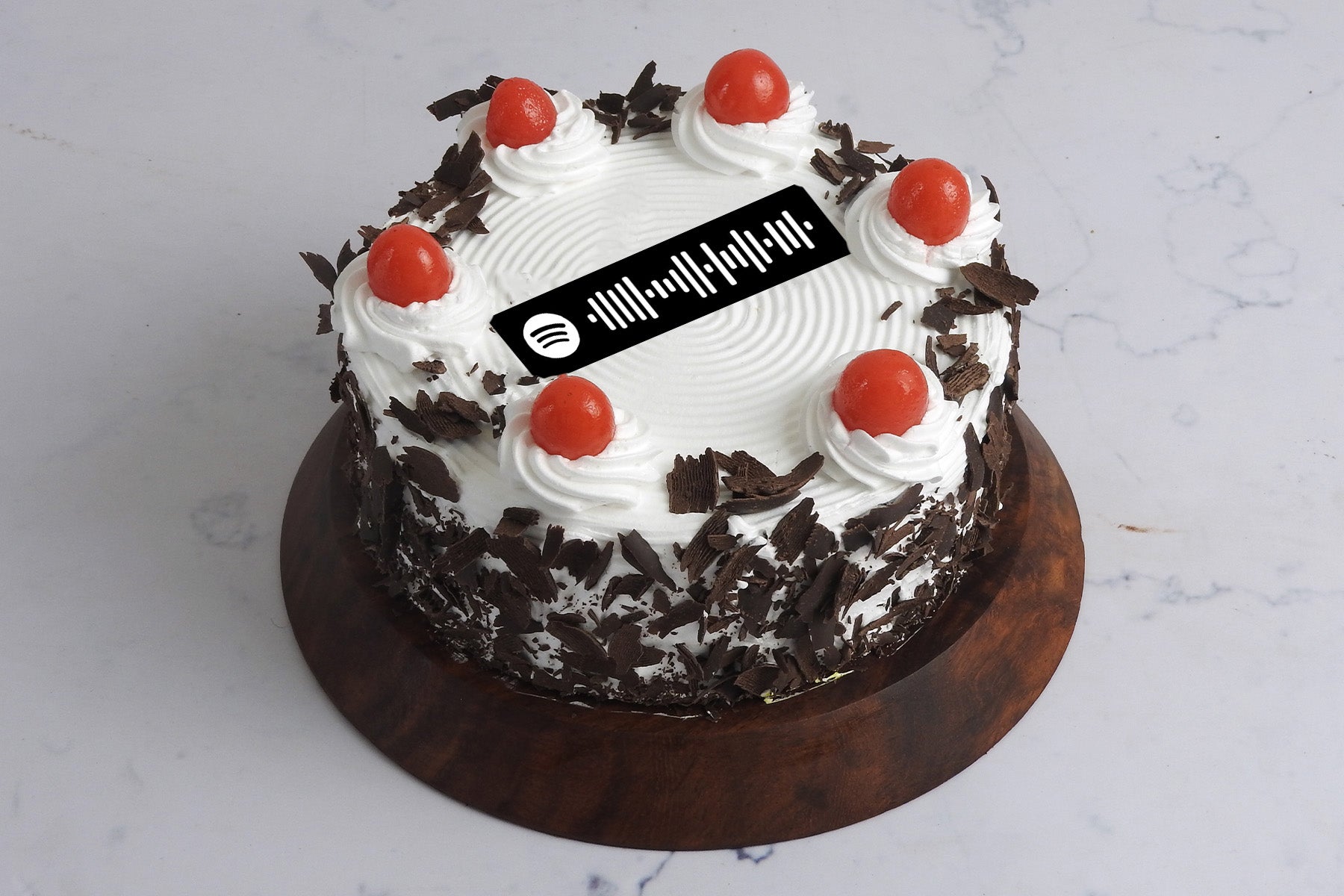 It is a delicious, elegant and simple choice for any occasion. Now, you can have spotify songs code printed on the cake and dedicate song through our signature Blackforest Cake.