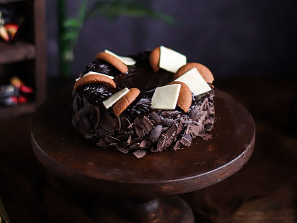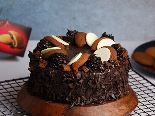 Inspired from delicious cookies, this Chocolate Truffle cake reveals an airy mousse inside with chocolate flakes and dark ganache garnish on the outside. Topped with crunchy and goey choco filled cookies, this cake is definitely a masterpiece and a yummy affair!