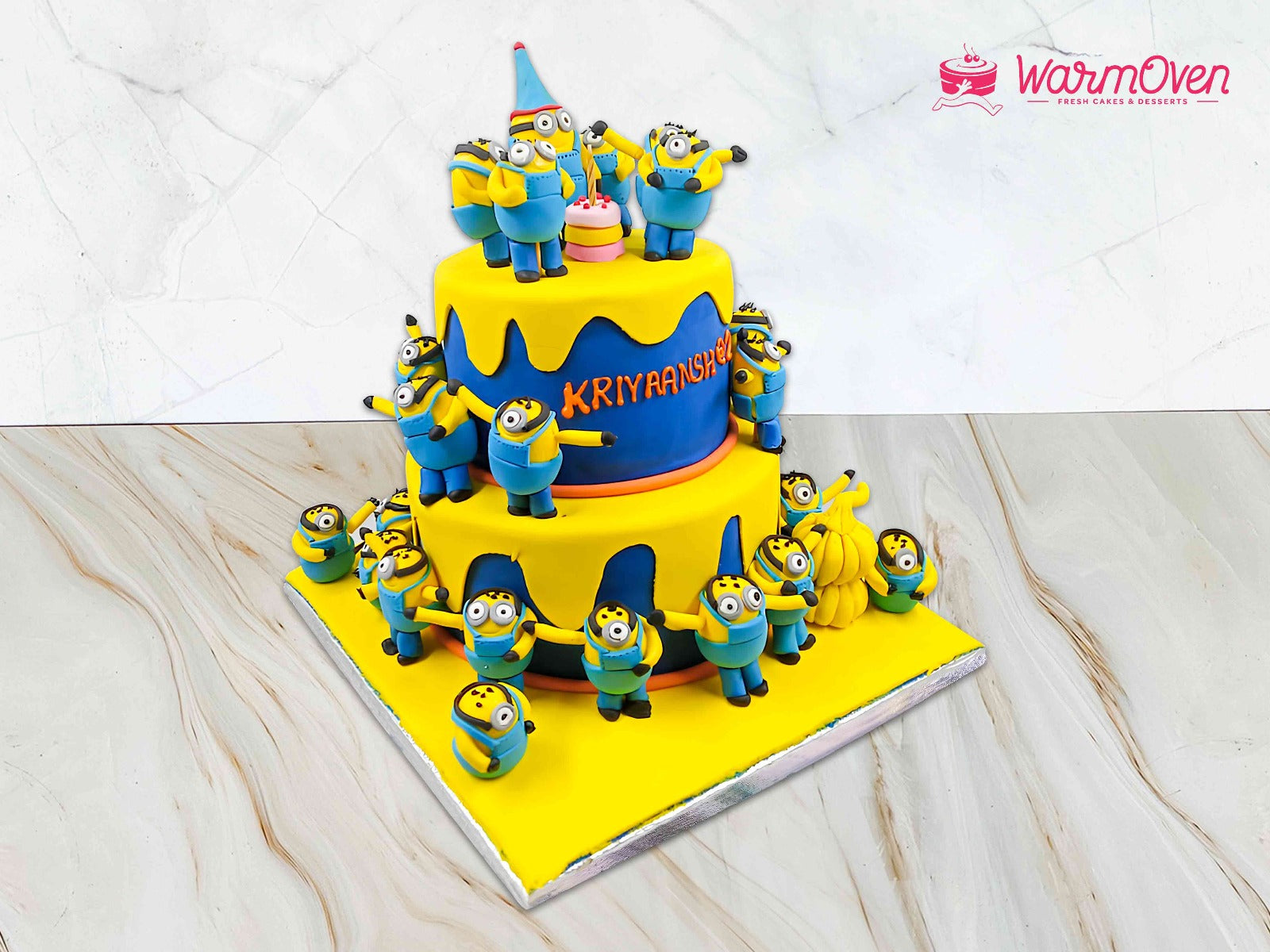 This Minion Theme 2-tier Custom Cake is the perfect way to show your love for the little yellow creatures! The cake is covered in fondant with lots of minions, and the cake can be customized with the flavor of your choice.