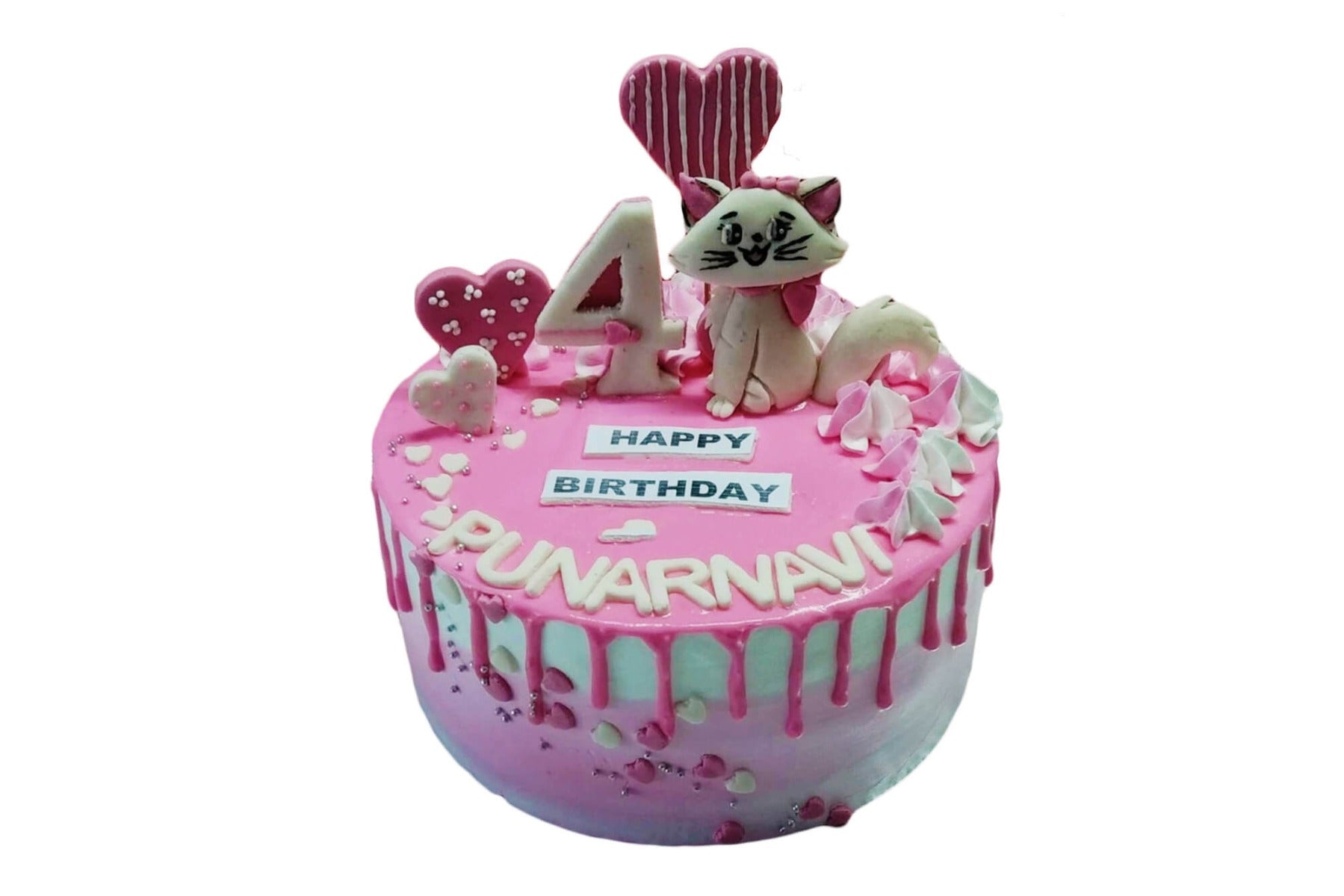 Introducing the perfect cake for all the cat lovers out there - our kitty theme drip cake! Covered in delicious fondant sheet and adorned with cute kitty and heart decorations, this cake is sure to please anyone with a sweet tooth. Made with our signature moist and fluffy vanilla sponge, this cake is perfect for any special occasion - whether it's a birthday, anniversary, or just because!
