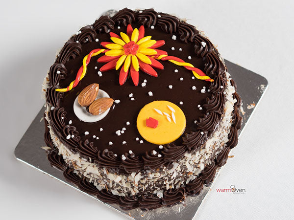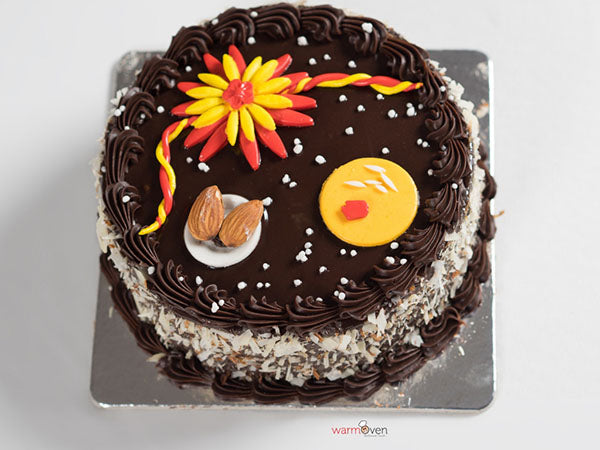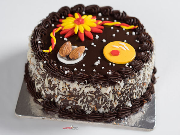 This is a combo of a beautiful delicious chocolate cake and an elegant rakhi.